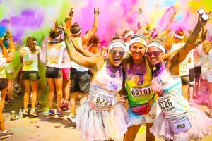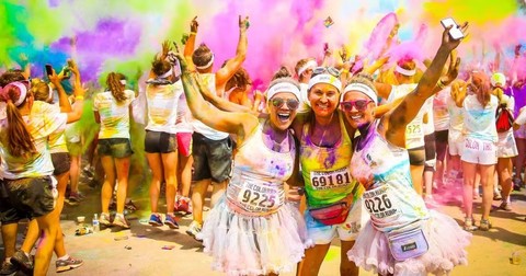 1、定向开跑会进行彩虹跑,五颜六色的彩虹喷雾,撒欢玩!